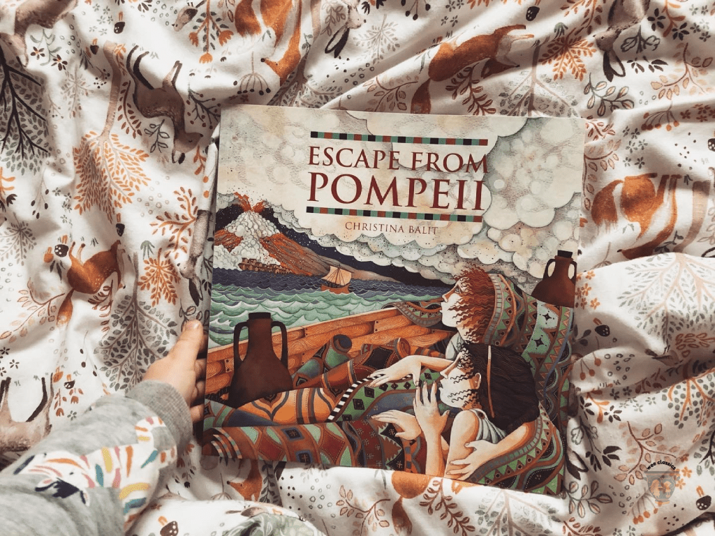 We’ve been exploring lots of Roman forts here lately, so it definitely seemed like time to balance out all our Greek and Egyptian books with some more Romans! We’ve read about Pompeii before a few times before and it immediately captured H’s imagination, so I was really excited when I spied Escape from Pompeii by Christina Balit.
