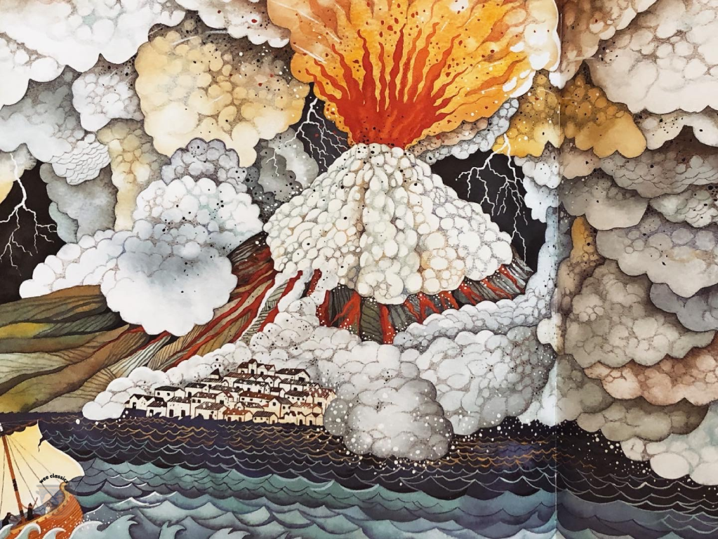 The Gentle Mountain isn’t what it seems – Vesuvius is erupting! Tranio and Livia end up escaping by boat just in time – and there’s another grim but authentic touch when the children see people running with ‘pillows on their heads’, a detail we’re told by Pliny the Younger in his own letters about the eruption.